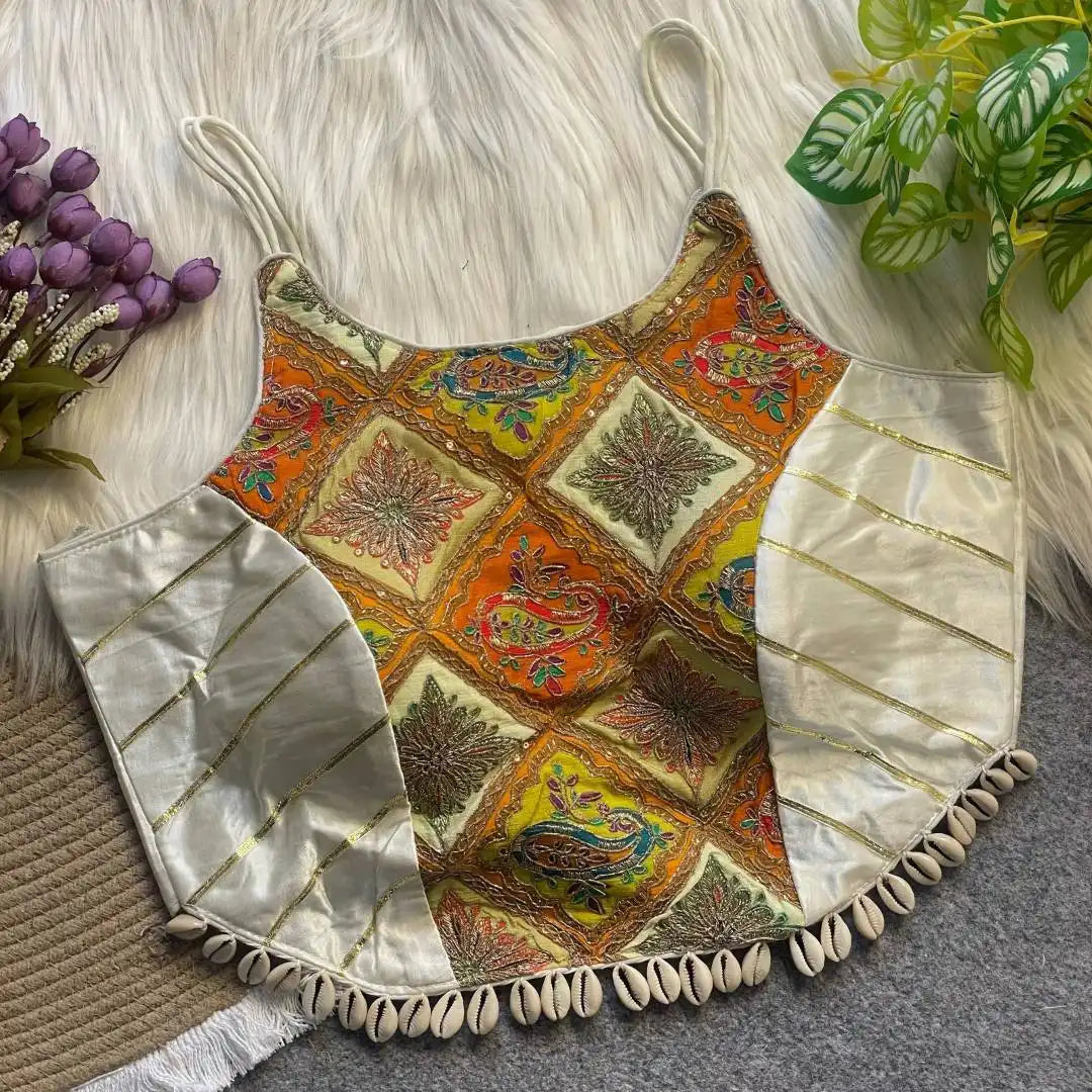 Murnal Navrang Kediyu White Color Gaji Silk Readymade Blouse