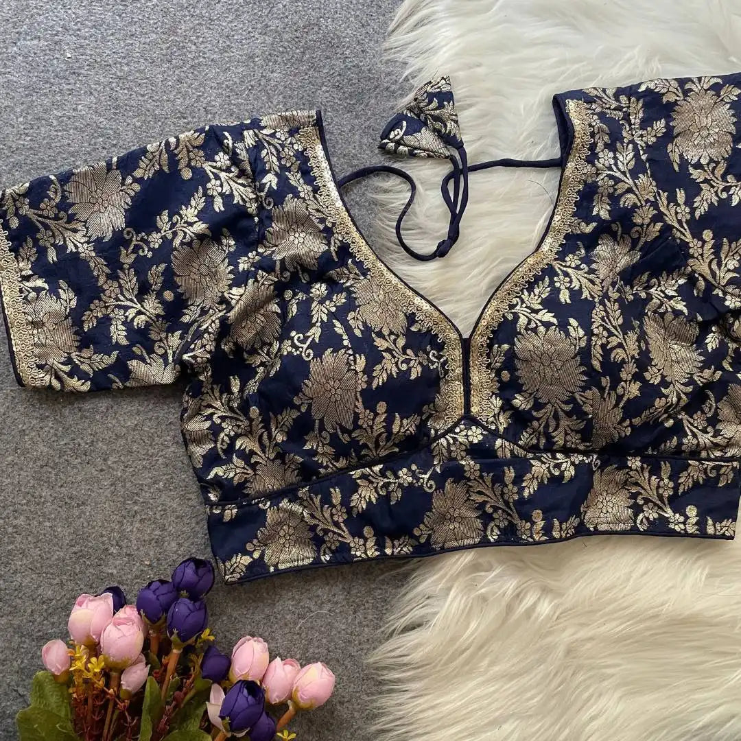 Blouse: | Pure Dola Silk With Golden Weaving | Work :- Less Sequence n Zari Work Golden | Sleeve :- 10 inch | Lining :- Cotton Astar | Open :- Back With Hook n Roop | Pattern :- V Neck | Pad :- Yes Padded |