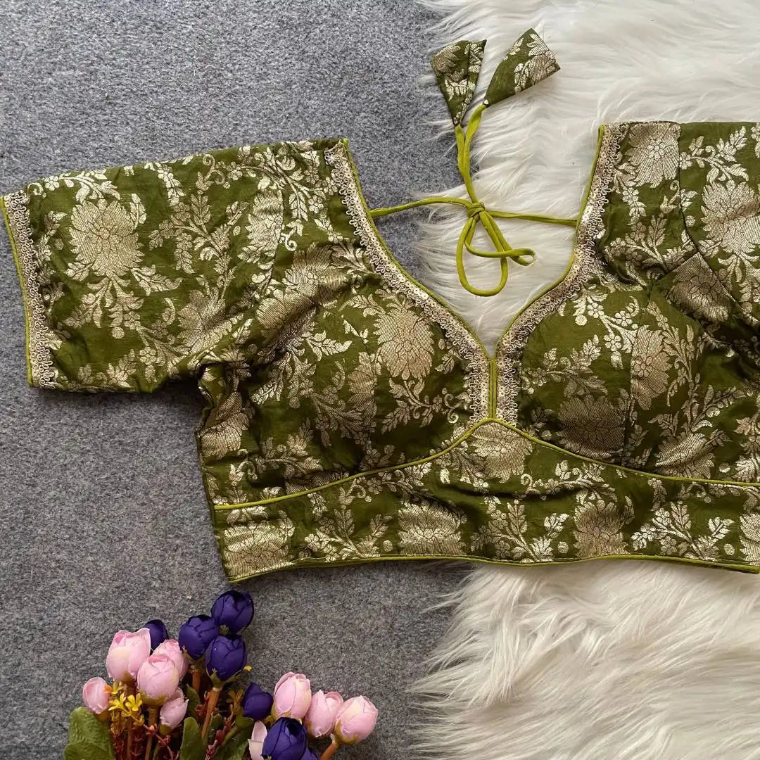 Ruhi Vol 45 Party Wear Yellowgreen Color Dola Silk Blouse With Sequence Lace