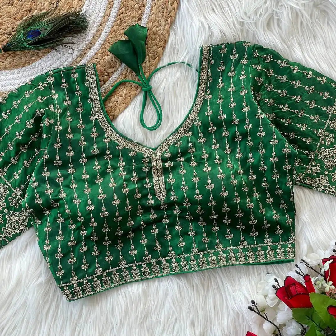 Blouse: | Heavy soft silky Zimichoo | DESGINE:- Beautiful Work bridal desgine Heavy Stitching Heavy Padded Handmade Hooks With Beautiful Latkans FRONT open Style |