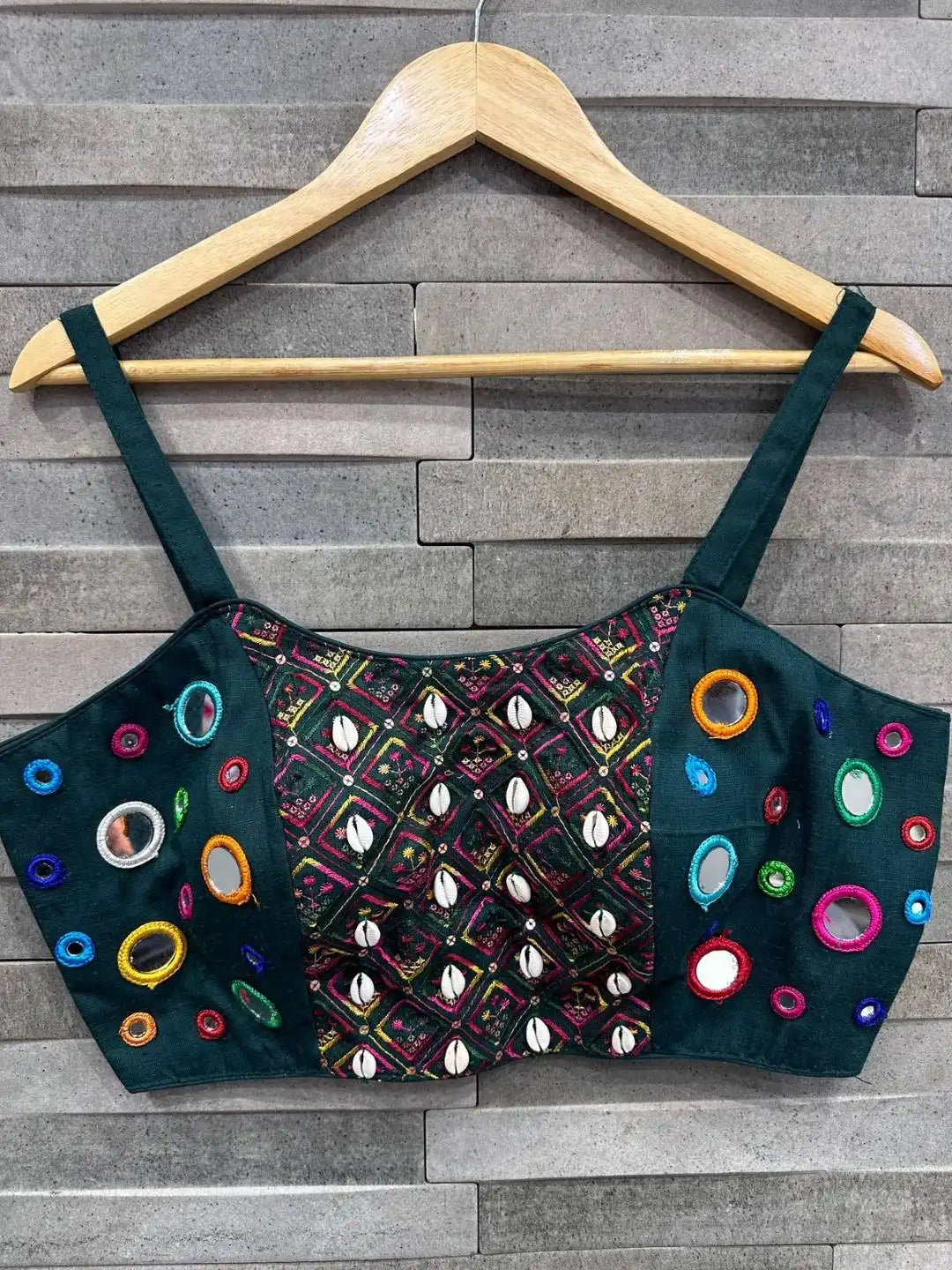 Ruhi Vol 49 Spaghetti Forestgreen Color Western Blouse Strip less Collection