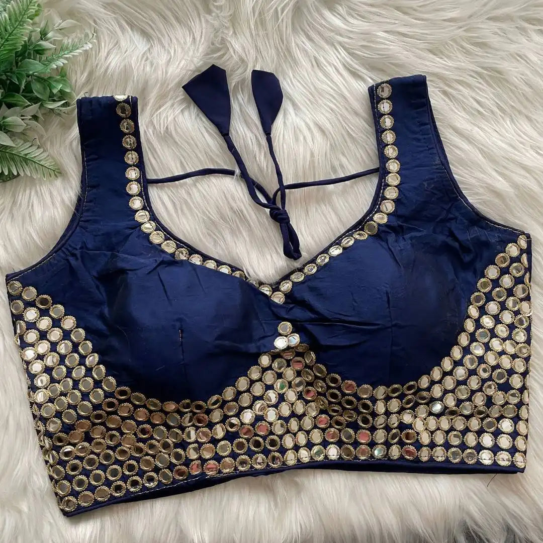Blouse: | Satin silk with fusing | DESGINE:- New desgine SEQUENCE DARPAN VOL-3* back Doori , fully sequence mirrors and jari work make ur look awesome sleeves less. |