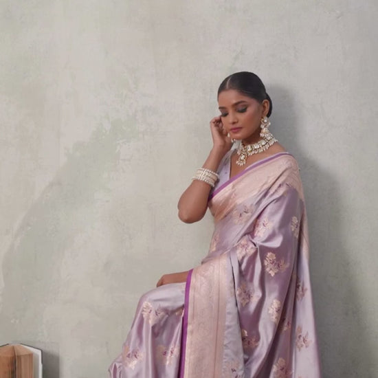 Saree : Satin Silk With Banarasi Zari Woven with Butta Concept & Rich Pallu, Meenakari in Border, Butta & Pallu